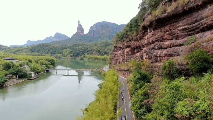 选手们从丹霞山南门出发,骑行在丹山碧水的大自然间,感受赛场的激情热血,阳光、微风、竹林、鲜花、古树伴行,还能沿途欣赏阅丹公路美如画卷的自然风光,沐浴大自然的奇幻瑰丽,领略韶关最美初秋,用心体验丹山碧水的魅力,仿佛车在景中行,人在画中游。